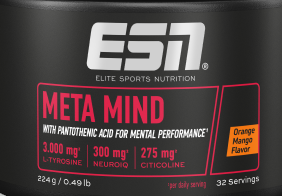 Outre les vitamines, minéraux et caféine décrits ci-dessous, ESN Meta Mind contient les ingrédients suivants : L-tyrosine (3 000 mg), acétyl-L-carnitine (1 000 mg), choline issue de la citicoline (275 mg), uridine-5-monophosphate (200 mg), L-théanine (100 mg), extrait de pépins de raisin (95 mg), extrait de ginkgo biloba (75 mg), extrait de grains de café vert et AstraGin® (35 mg).